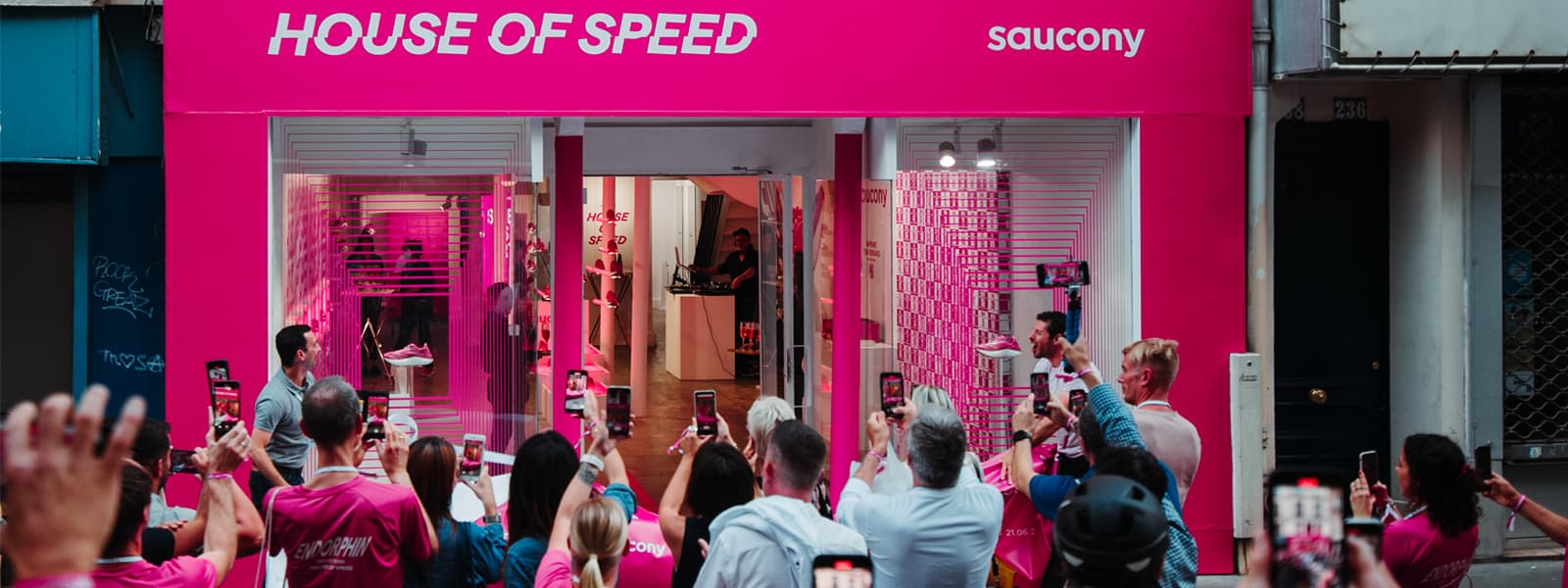 Pour promouvoir les nouveautés de sa gamme performance au coloris marketing rose magenta très puissant visuellement, Saucony nous a sollicité pour imaginer un dispositif inédit au cœur de Paris et en pleine période de Fashion Week. Un lieu imaginé, créé et habillé aux couleurs de la gamme, au rayonnement international ouvert au public et aux runners parisiens qui, après une soirée d’inauguration réservée aux retailers et médias invités de toute l’Europe ainsi qu’aux collaborateurs Saucony, ont pu prendre à des expériences gratuites et participer à des sessions running pour tester les produits. Au total : 5 jours d’ouverture, 20 sessions de testing coachées sur les quais parisiens et 350 testeurs. Une « maison de la vitesse » imaginée pour faire découvrir et mettre en lumière les derniers modèles de la gamme Endorphin, des modèles taillés pour la vitesse et la performance : l’Endorphin Pro 3 et l’Endorphin Speed 3. 5 jours d’ouverture et d’exploitation pour communiquer sur les produits Endorphin mais aussi sur l’univers et les valeurs de la marque. Tout au long de l’évènement, des contenus ont été produits pour valoriser le dispositif, les produits et la marque à destination des consommateurs, mais aussi des collaborateurs et des retailers.