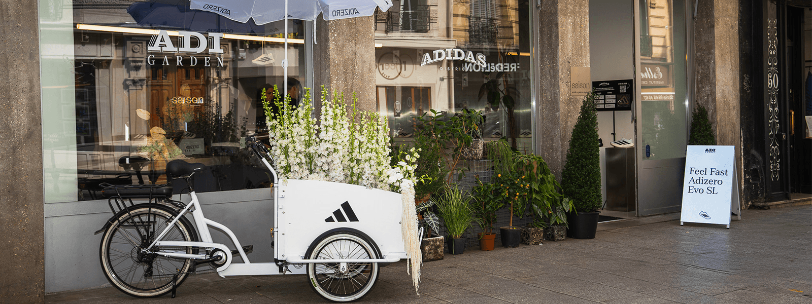 Le week-end du Marathon de Paris 2026 a été le terrain d'expression choisi par adidas pour lancer une activation inédite : adidas District. Un dispositif imaginé autour de l'Evo SL, pensé pour ancrer la nouvelle paire dans l'un des rendez-vous les plus fort du calendrier running parisien. L'ambition dépassait le simple lancement produit : créer un moment de vie mémorable, capable de toucher les coureurs là où ils se trouvent, au cœur de la ville, dans l'effort, dans le partage. Nous avons donc conçu un dispositif rue Oberkampf, articulé autour de trois commerces activés pendant quatre jours. Chez adi garden, l'Evo SL était au centre : découverte produit, sessions de test, immersion dans l'univers running d'adidas. Chez adi coffee, l'activation prenait une teinte plus douce, lifestyle et communautaire, pour accueillir aussi bien les coureurs du dimanche que les passionnés de culture urbaine. Chez adi care, enfin, l'expérience se prolongeait autour de la récupération et du bien-être, en résonance directe avec les attentes d'un public venu courir le Marathon. En fil rouge de l'ensemble, nous avons orchestré la cohérence du lieu, de la programmation et de la présence en ligne, en collaboration avec runpack. Une couverture sociale media pensée pour faire exister adidas District au-delà du bitume, dans les contenus, dans la conversation, dans la durée, au cœur de la communauté.
